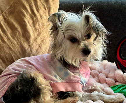 Likes: She likes being with her person/people, playing with toys (especially playing fetch), treats, food, love and attention (pets, kisses, cuddles)